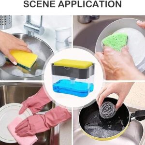 2-in-1 Soap Dispenser with Sponge Holder for Kitchen Sink, Built-In Pump Soap Dispenser, Dish Soap Organizer with Sponge Storage, Space-Saving Kitchen Cleaning Accessory
