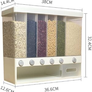 6 in 1 Wall-Mounted Cereals Dispenser Press Grain Storage Tank Dry Food Organizer Rice Dispenser for Home and Kitchen