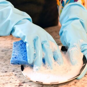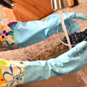 Made from premium food-grade silicone, these gloves are safe for direct contact with dishes, cookware, and food items. The soft yet durable material resists odors, stains, and bacteria buildup, making it a hygienic alternative to traditional sponges and rubber gloves. The waterproof design keeps hands dry while protecting skin from detergents, grease, and hot water.