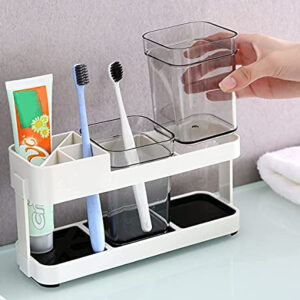 Plastic Toothbrush and Toothpaste Holder with Cup for Bathroom Countertop storage Organizer