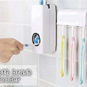 Toothbrush Holder and Toothpaste Dispenser Hands Free for Family Washroom, Wall Mounted Bathroom Organizer with Automatic Toothpaste Squeezer, Hygienic Storage for Adults & Kids