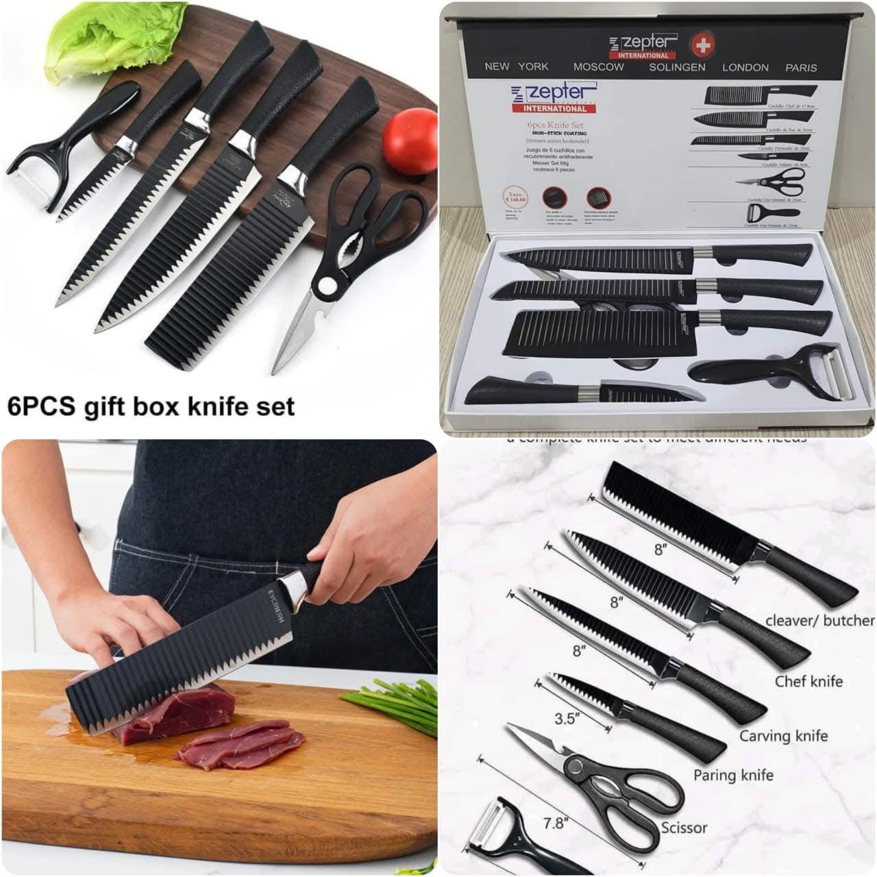 The Zepter 6-Pcs Non-Stick Stainless Steel Kitchen Knife Set brings precision, comfort, and durability to your cooking. Perfect for both professional chefs and home cooks, this premium set delivers outstanding performance for all food preparation tasks.