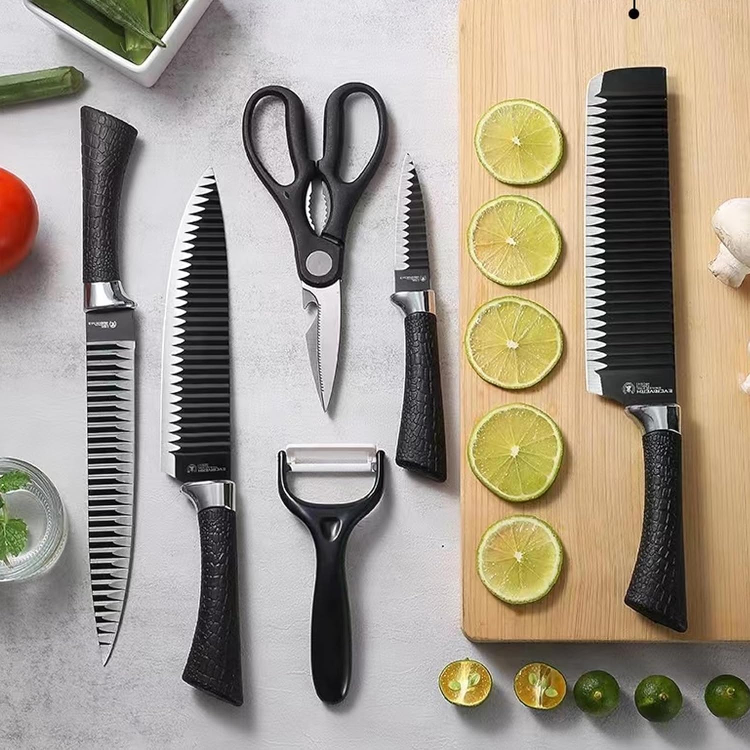 This versatile 6-piece set handles everything from precise peeling to heavy chopping and carving. The modern, elegant design adds a professional touch to any kitchen while blending functionality with style.